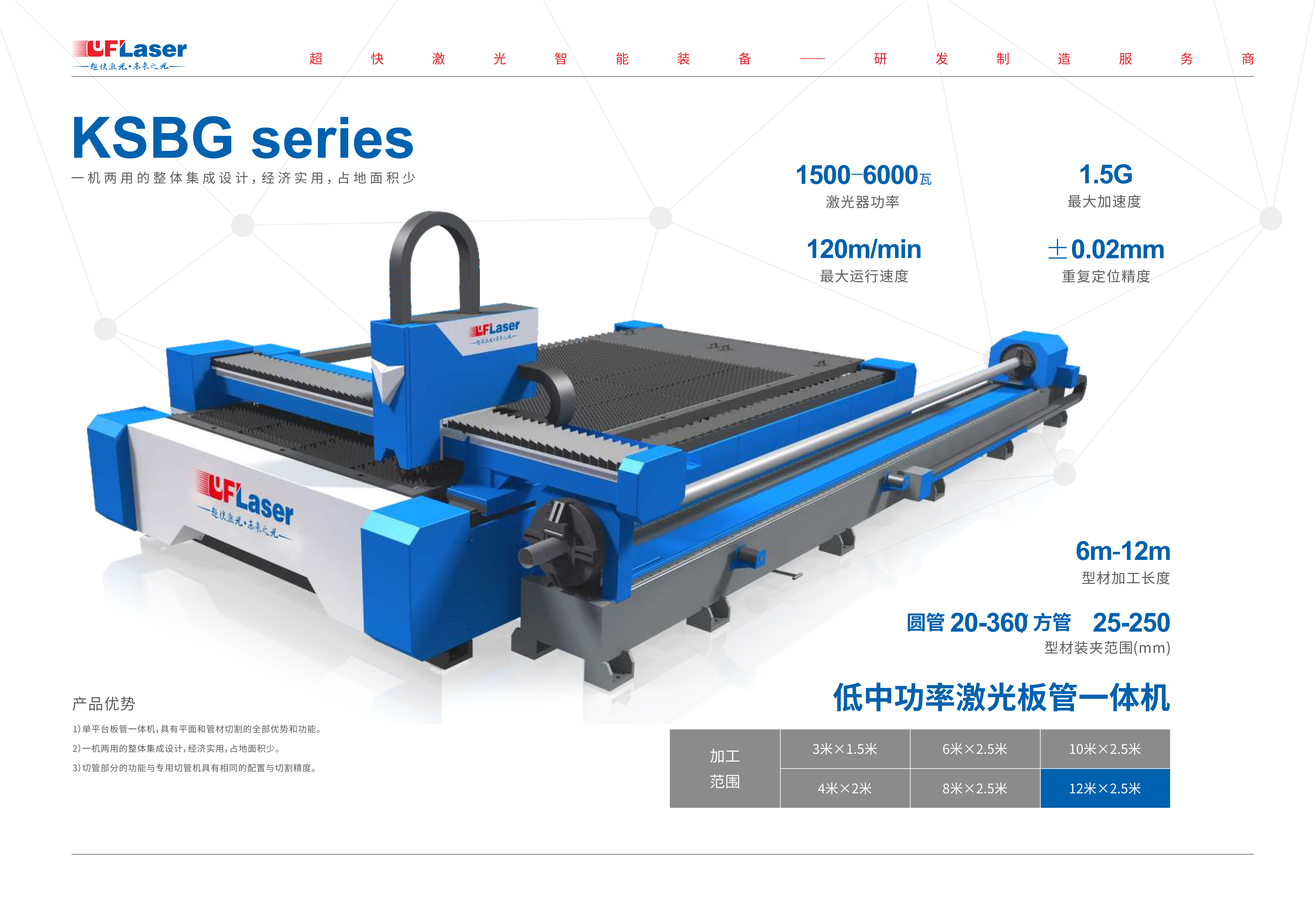 1. 一機(jī)兩用的整體集成設(shè)計(jì),經(jīng)濟(jì)實(shí)用,占地面積少,既可以加工板材又可以加工管材,使用便捷。2.具有獨(dú)特平面切割的全部優(yōu)勢(shì)和功能。