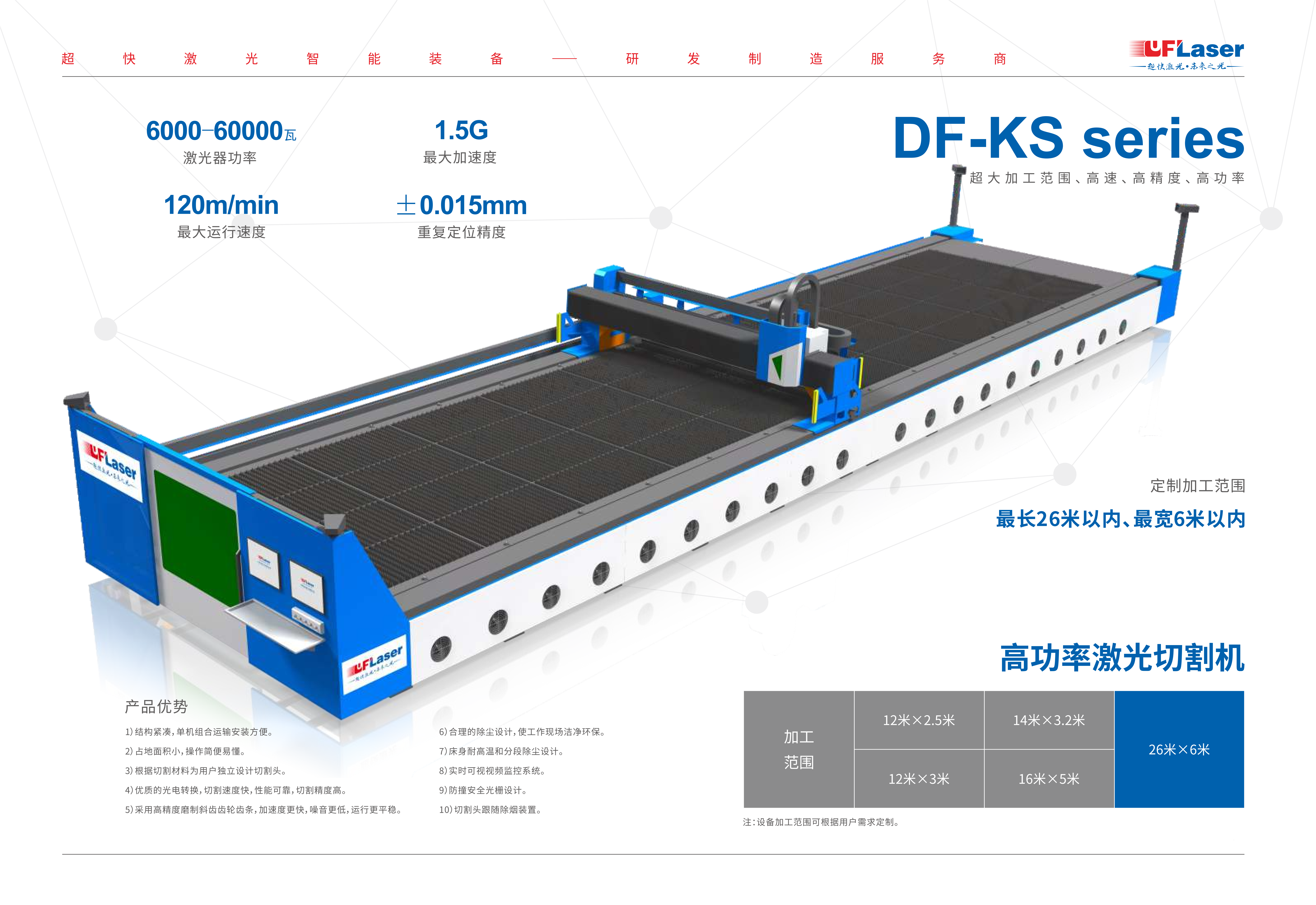 4.超大幅面設(shè)計,13米*3米使加工范圍更大。